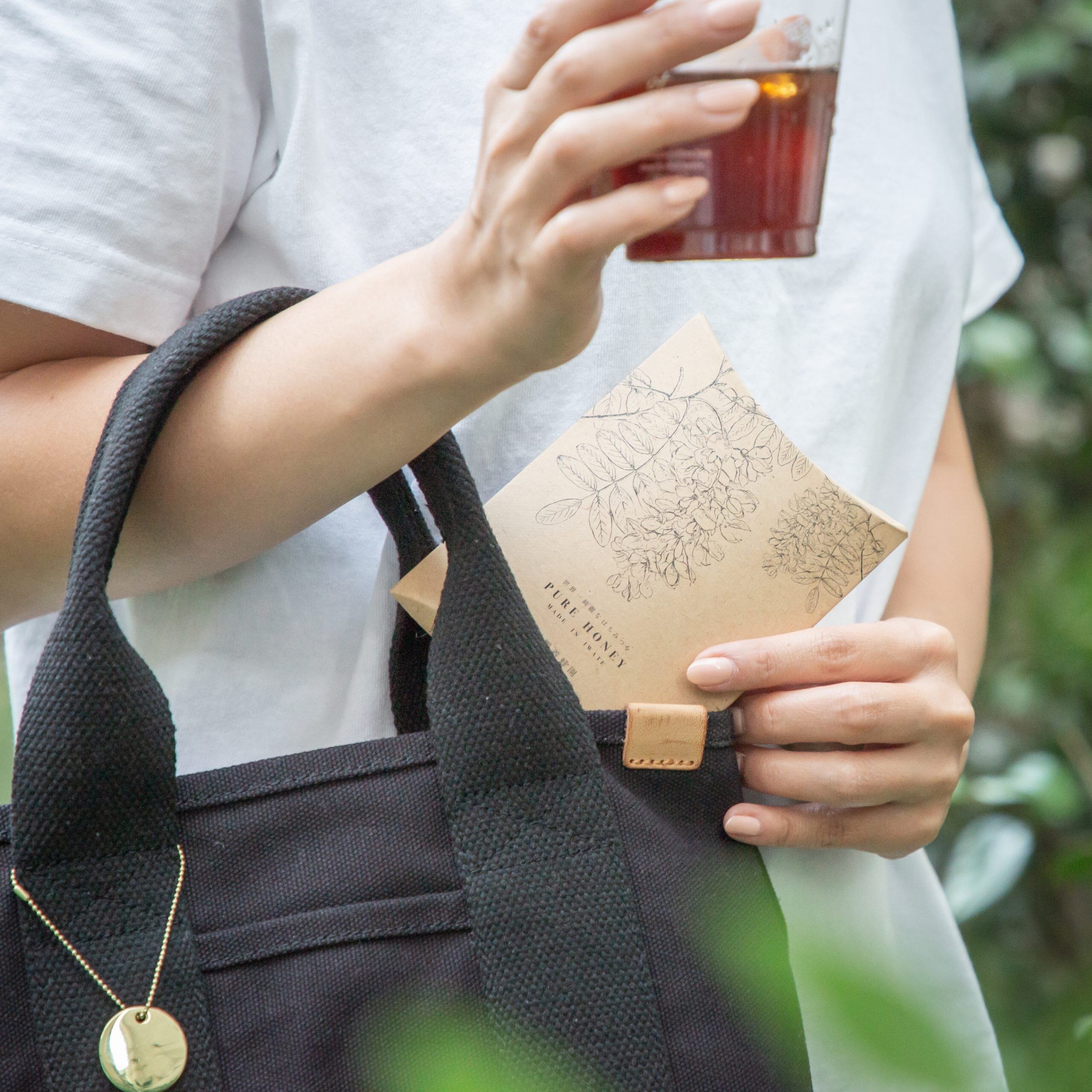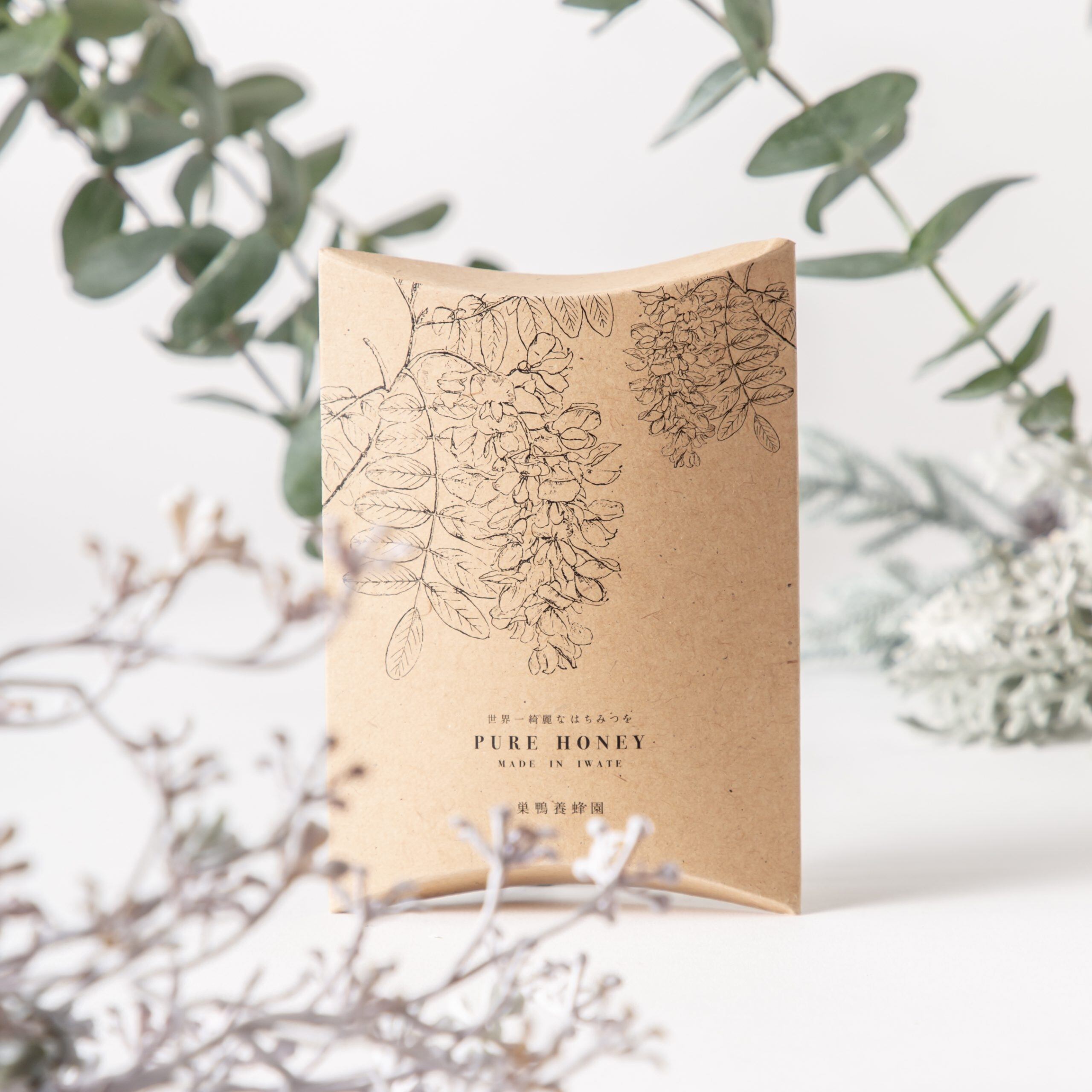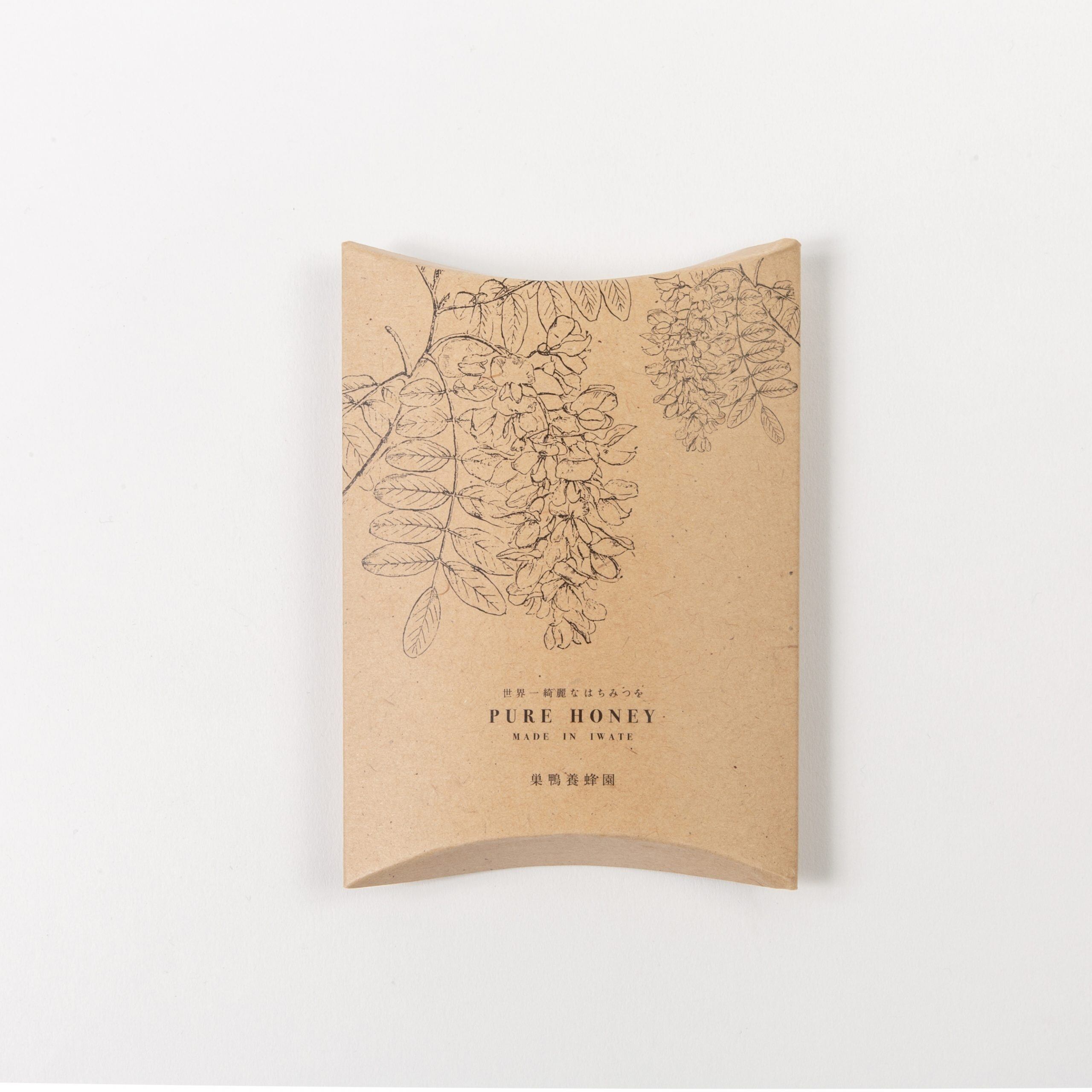 表のデザインには「あかしあ」の花が描かれています。はちみつが採れるあかしあの木は正確にいうとマメ科の”ニセアカシア”という花。どんなお花からはちみつは採れているのだろう…という事を少しでも多くの方に知っていただき、少しでもはちみつや養蜂・ミツバチをふとした日常に思い出して欲しいという願いが込められています。